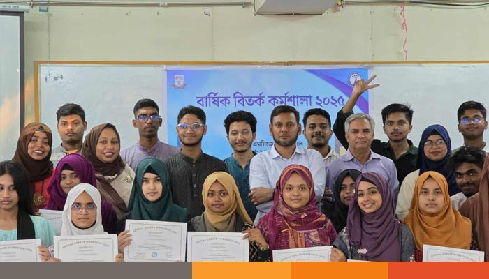 বিতর্ক কর্মশালাটি সঞ্চালনা করেন এমসিজে ডিবেটিং ক্লাবের সভাপতি মোস্তাফিজুর রহমান এবং সাধারণ সম্পাদক মো.জহিরুল ইসলাম।