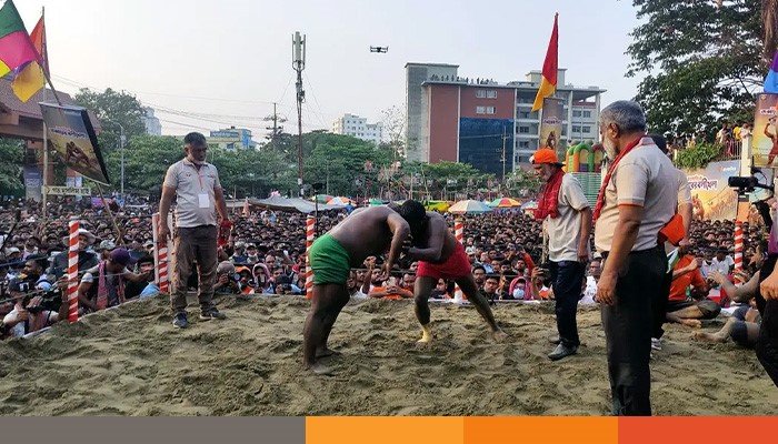 শনিবার (২৫ এপ্রিল) বিকেলে শুরু হওয়া মূল প্রতিযোগিতায় দেশের বিভিন্ন অঞ্চল থেকে অংশ নেন প্রায় ১০৮ জন বলী। প্রতিটি লড়াই ছিল টানটান উত্তেজনায় ভরা। একের পর এক শক্ত প্রতিদ্বন্দ্বিতা পেরিয়ে শেষ পর্যন্ত সবার নজর কাড়েন বাঘা শরীফ ও রাশেদ বলী। দীর্ঘ ৩০ মিনিটের লড়াই শেষে চ্যাম্পিয়নের মুকুট ধরে রাখেন বাঘা শরীফ।