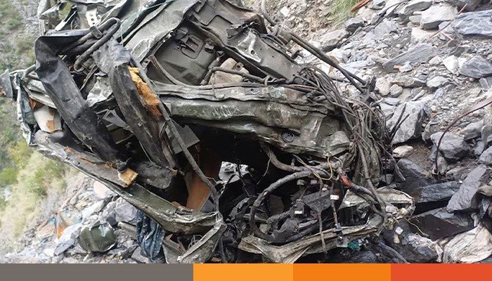 এ সময় দুর্ঘটনাস্থলের ৭০০ ফুট গভীর খাদে গাড়ির ক্ষতবিক্ষত ধ্বংসাবশেষ, সৈন্যদের মৃতদেহ, তাদের জিনিসপত্র এবং কিছু কাগজপত্র ছড়িয়ে ছিটিয়ে থাকতে দেখা যায়।