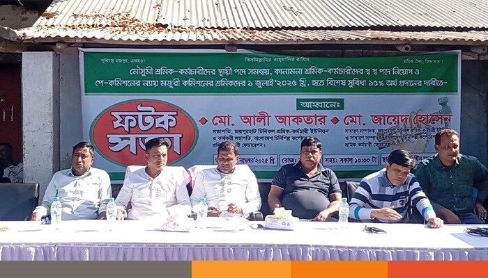 মৌসুমী শ্রমিক-কর্মচারীদের স্থায়ী পদে সমন্বয়, কানামনা শ্রমিক-কর্মচারীদের স্ব স্ব পদে নিয়োগ ও পে-কমিশনের ন্যায় মজুরী কমিশনের শ্রমিকদের ১ জুলাই’২০২৫ খ্রি. হতে বিশেষ সুবিধা ১৫% অর্থ প্রদানের দাবীতে জয়পুরহাটের ফটক সভা অনুষ্ঠিত হয়েছে। শনিবার বেলা সাড়ে ১১টায় জয়পুরহাট চিনিকলের প্রধান ফটকে এ সভা অনুষ্ঠিত হয়।