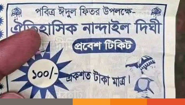 ঈদের ছুটিতে বিনোদনের আশায় জয়পুরহাটের কালাইয়ে ঐতিহাসিক নান্দাইল দিঘিতে ঘুরতে এসে চরম হয়রানির শিকার হয়েছেন হাজারো দর্শনার্থী। জাদুর খেলার ফাঁদ পেতে এবং মেলার নামে অবৈধভাবে ১০০ টাকার টিকিট ধরিয়ে দিয়ে সাধারণ মানুষের পকেট কেটেছে স্থানীয় একটি প্রভাবশালী সিন্ডিকেট। এই চাঁদাবাজির নেতৃত্বে ছিলেন স্থানীয় বিএনপি নেতা পরিচয়দানকারী গোলাম মোস্তফা ও তার দলবল।