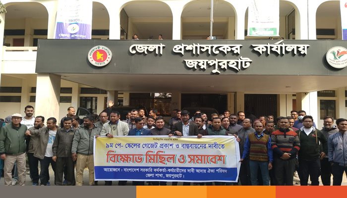 দ্রব্যমূল্যের লাগামহীন ঊর্ধ্বগতির সঙ্গে সঙ্গতি রেখে ৯ম জাতীয় পে-স্কেলের গেজেট প্রকাশ ও তা দ্রুত বাস্তবায়নের দাবিতে জয়পুরহাটে বিক্ষোভ মিছিল ও সমাবেশ করেছে সরকারি কর্মকর্তা-কর্মচারীরা। রোববার (১ ফেব্রুয়ারি) বেলা ১১টায় জেলা প্রশাসন চত্বরে ‘জেলা সরকারি কর্মকর্তা-কর্মচারী দাবি আদায় ঐক্য পরিষদ’-এর ব্যানারে এই কর্মসূচি পালিত হয়।