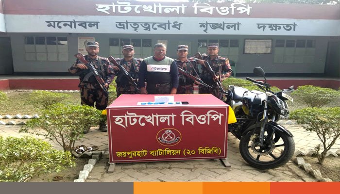 জয়পুরহাটের পাঁচবিবি উপজেলায় ইয়াবা ট্যাবলেটসহ তাজুল ইসলাম (৫২) নামে সাবেক সেনা সদস্যকে আটক করেছে বর্ডার গার্ড বাংলাদেশ (বিজিবি)। বুধবার (৭ জানুয়ারি) বিজিবির জয়পুরহাট ব্যাটালিয়ন (২০ বিজিবি) থেকে পাঠানো এক প্রেস বিজ্ঞপ্তিতে এ তথ্য জানানো হয়। এদিনে দুপুর ২টার দিকে পাঁচবিবি উপজেলার উচনা মাদ্রাসা মোড় এলাকায় অভিযান পরিচালনা করে তাকে আটক করা হয়। এসময় একটি ১৫০ সিসির অ্যাপাচি মোটরসাইকেল, একটি অ্যান্ড্রয়েড মোবাইল ফোন, একটি বাটন মোবাইল ফোন ও দুটি সিমকার্ড জব্দ করা হয়। উদ্ধারকৃত মাদকদ্রব্য ও অন্যান্য সরঞ্জামাদির আনুমানিক বাজারমূল্য ৫ লাখ ২৯ হাজার ৫০০ টাকা।