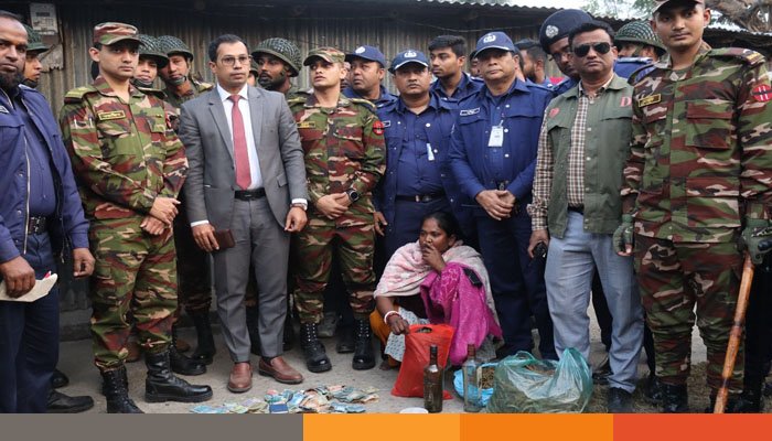 জয়পুরহাটে গাঁজা ও টাকাসহ নারী মাদক ব্যবসায়ী আটক