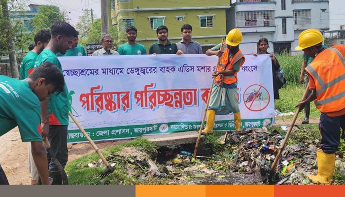 এডিস মশার প্রজননস্থল হক ধ্বংস,অপরিচ্ছন্ন স্থান হোক পরিচ্ছন্ন’ এই স্লোগান কে নিয়ে জয়পুরহাট শহরের আলহেরা একাডেমি স্কুল এন্ডকলেজ এর পাশে অবস্থিত খালে পরিষ্কার-পরিচ্ছন্নতা অভিযান পরিচালনা করে খালটি পরিষ্কার করা হয়। রোববার সকালে জয়পুরহাট পৌরসভা ও বিডি ক্লিন নামে স্বেচ্ছাসেবী সংগঠনের উদ্যোগে ওই খালটি পরিষ্কার করা হয়।