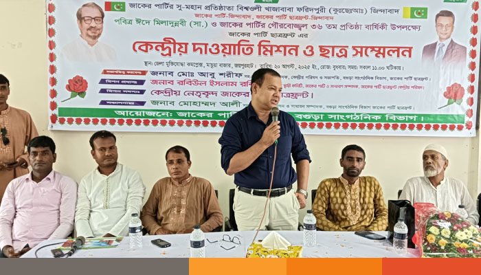 জাকের পার্টির ৩৬তম প্রতিষ্ঠা বার্ষিকী উপলক্ষে জয়পুরহাটে ছাত্রফ্রন্টের কেন্দ্রীয় দাওয়াত মিশন ও ছাত্র সম্মেলন অনুষ্ঠিত হয়েছে। বুধবার বিকেলে জয়পুরহাট মুক্তিযোদ্ধা কমপ্লেক্স ভবনে ছাত্রফ্রন্টের বগুড়া সাংগঠনিক বিভাগের আয়োজনে এ সম্মেলন অনুষ্ঠিত হয়।