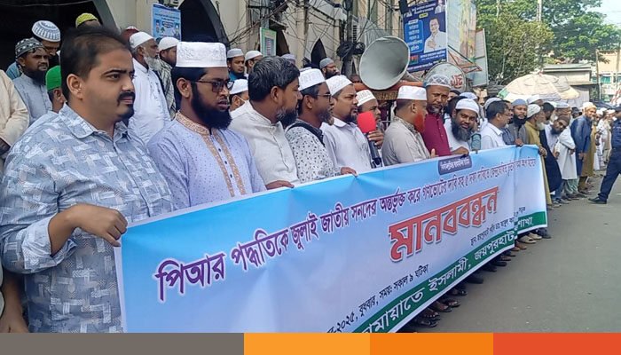 জয়পুরহাটে পিআরসহ পাঁচ দফা দাবিতে মানববন্ধন