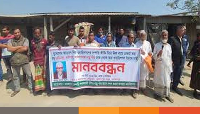 বুধবার সকালে বিলের তীরে তীরবর্তী জেলে ও অসহায় পরিবারেরা এ মানববন্ধনে অংশ নেন।