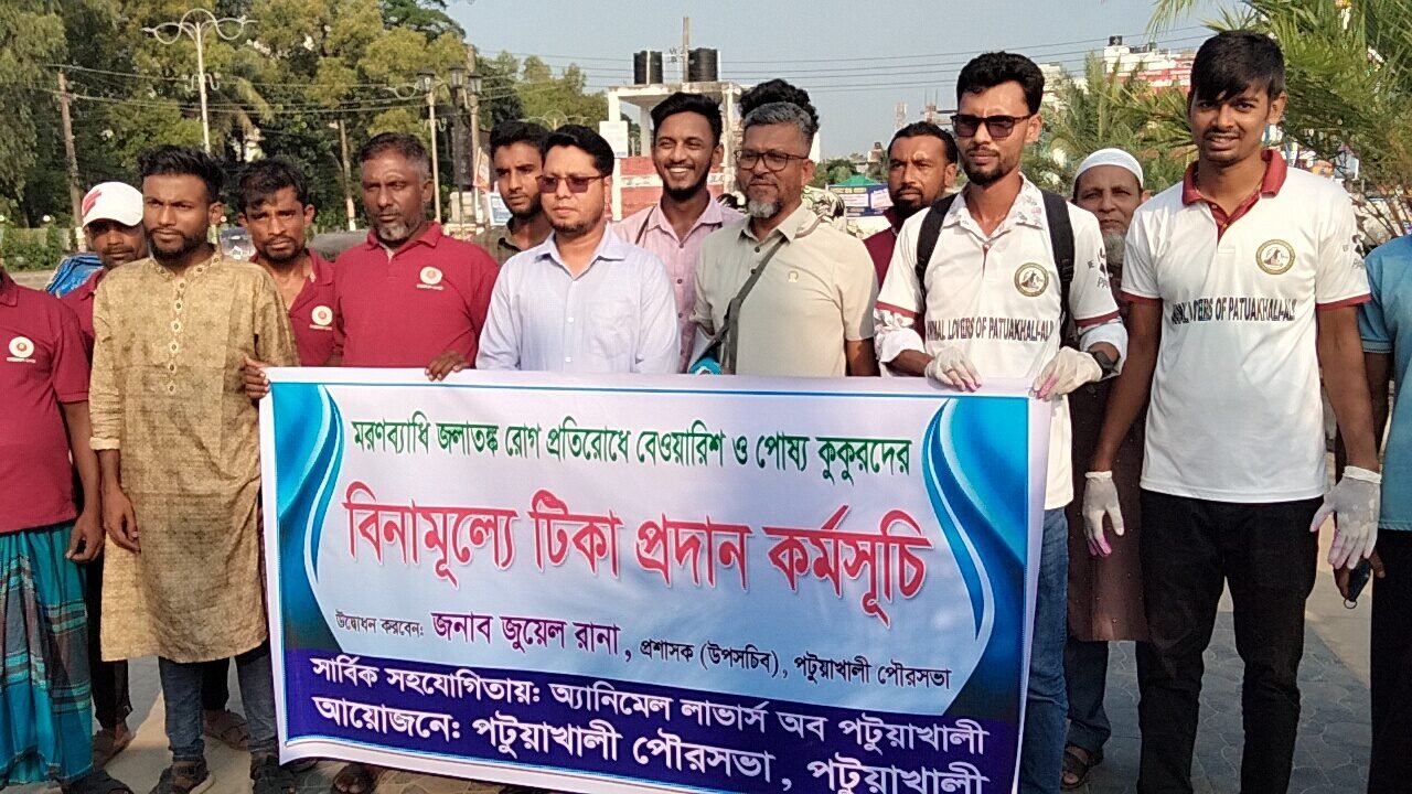 জলাতঙ্ক রোগ প্রতিরোধ করতে পটুয়াখালীতে বেওয়ারিশ ও পোষ্য কুকুরদের টিকা প্রদান কার্যক্রমের উদ্বোধন