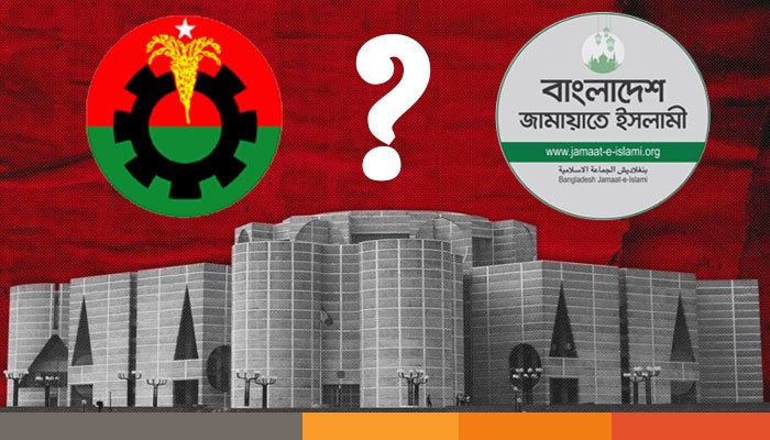 প্রতিদ্বন্দ্বিতায় উভয় পক্ষই নিজেদের অতীতের বোঝা বহন করছে। বিএনপির বিরুদ্ধে অতীত দুঃশাসন ও চাঁদাবাজির অভিযোগ যেমন বড় হাতিয়ার, তেমনি জামায়াতের স্বাধীনতাবিরোধী ভূমিকা ও নারীবিরোধী রাজনীতি তাদের জন্য বড় দুর্বলতা। এর সঙ্গে যুক্ত হয়েছে আন্তর্জাতিক মহল ও অন্তর্বর্তী সরকারের ভূমিকা। আন্তর্জাতিক শক্তিগুলো সংস্কারের চেয়ে বেশি আগ্রহী নিয়ন্ত্রণযোগ্য স্থিতিশীলতায়। ফলে তারা জামায়াত, এনসিপি জোটকে পুরোপুরি বাতিলও করছে না, আবার বিএনপির বড় জনসমর্থনকেও উপেক্ষা করতে পারছে না। অন্তর্বর্তী সরকারও নিরপেক্ষতার দাবি ও বাস্তব শাসন পরিচালনার চাপের মধ্যে পড়ে এক ধরনের অস্বস্তিকর ভারসাম্য রক্ষা করছে।