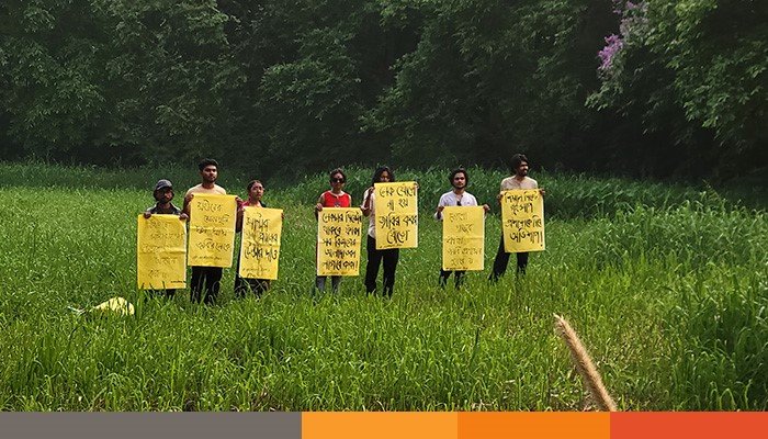 ২০ এপ্রিল (রবিবার) বেলা সাড়ে ৪টায় বিশ্ববিদ্যালয়ের কেন্দ্রীয় শহীদ মিনারের সামনে ‘জাহাঙ্গীরনগর বাঁচাও আন্দোলনের’ ব্যানারে তারা এ মানববন্ধন করেন। মানববন্ধন শেষে তারা পরিবেশ বিজ্ঞান বিভাগের সামনে চিহ্নিত গাছগুলোর চিহ্ন তুলে ফেলে। একই কর্মসূচির অংশ হিসেবে বিশ্ববিদ্যালয়ের লেক সংস্কারের দাবি জানিয়েছেন।