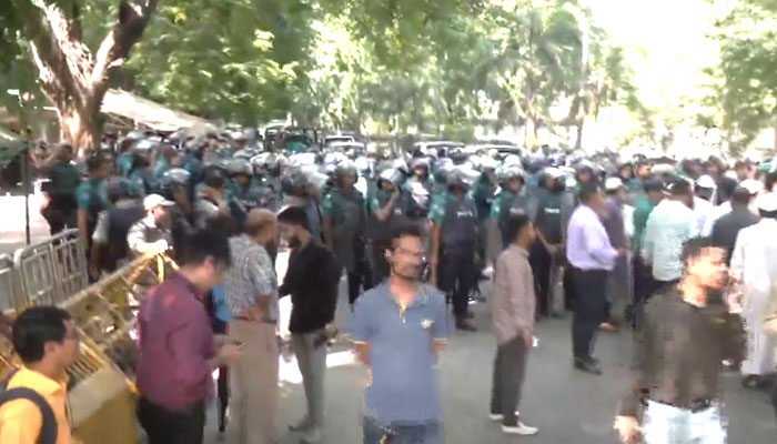 বৃহস্পতিবার (৬ নভেম্বর) দুপুর সাড়ে ১২টার দিকে পল্টন থেকে দলে দলে মিছিল নিয়ে পদযাত্রাটি মৎস্য ভবন এলাকায় পৌঁছালে সেখানে পুলিশের বাধার সম্মুখীন হয়।