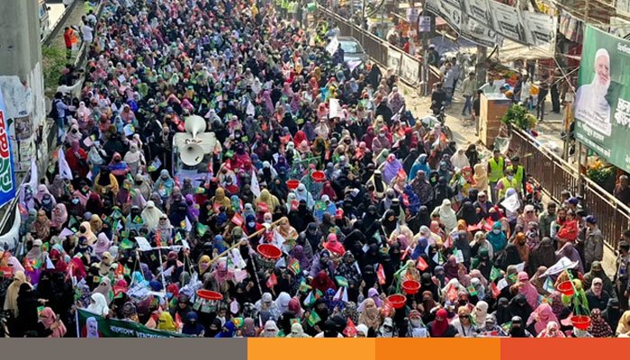 শনিবার সকাল সাড়ে ১০টায় রাজধানীর মিরপুর ১০ নম্বরে ফলপট্টি মোড় থেকে মিছিলটি শুরু হয়ে ১০ নম্বর গোল চত্বর হয়ে কাজীপাড়ায় গিয়ে শেষ হয়। এতে ব্যাপকসংখ্যক নারী অংশগ্রহণ করেন। এ সময় দাঁড়িপাল্লায় ভোট দেওয়ার জন্য আহ্বান জানিয়ে স্লোগান দেন তারা।