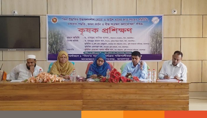 বিনা উদ্ভাবিত উচ্চফলনশীল বোরো ও আউশ ধানের জাত সমূহের পরিচিতি, চাষাবাদ পদ্ধতি, ফসল কর্তন ও বীজ সংরক্ষণ কলাকৌশল শীর্ষক কৃষক প্রশিক্ষণ অনুষ্ঠিত হয়েছে।