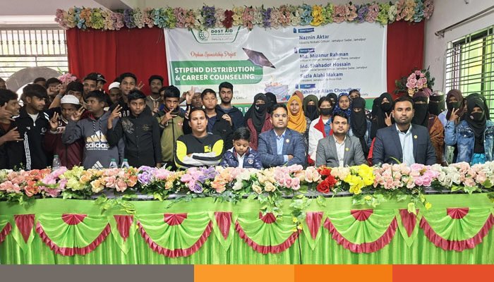 প্রধান অতিথির বক্তব্যে উপজেলা নির্বাহী অফিসার নাজনীন আক্তার বলেন, “এতিম ও সুবিধাবঞ্চিত শিশুদের শিক্ষা নিশ্চিত করা মানেই একটি সুন্দর ও মানবিক ভবিষ্যৎ গড়ে তোলা। দোস্ত এইডের মতো সংগঠনের এই উদ্যোগ সত্যিই প্রশংসনীয় এবং অনুসরণযোগ্য। সভাপতির বক্তব্যে দোস্ত এইডের প্রতিষ্ঠাতা ও চেয়ারম্যান জাহাঙ্গীর আলম চৌধুরী বলেন, “আমরা বিশ্বাস করি শিক্ষা হলো দারিদ্র্য থেকে মুক্তির সবচেয়ে কার্যকর হাতিয়ার। আর্থিক সংকট যেন কোনো এতিম শিক্ষার্থীর স্বপ্ন থামিয়ে না দেয়—সেই লক্ষ্যেই আমাদের এই নিয়মিত শিক্ষাবৃত্তি কার্যক্রম।”