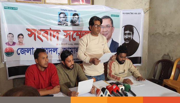 সোমবার (১৯ জানুয়ারি) দুপুরে জামালপুর জেলা বিএনপির দলীয় কার্যালয়ে আয়োজিত এক সংবাদ সম্মেলনে এ অভিযোগ করেন জেলা ছাত্রদলের নেতৃবৃন্দ।