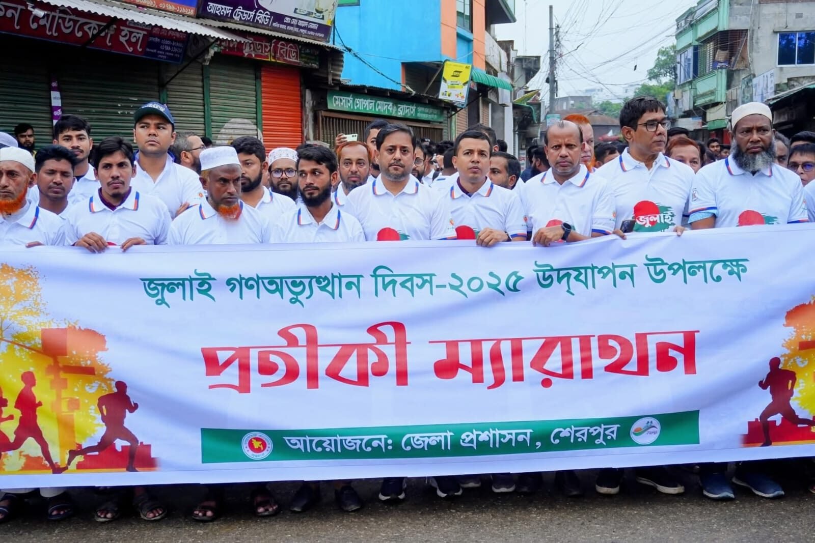 জুলাই গণঅভ্যুত্থান দিবস উদযাপন উপলক্ষে শেরপুরে প্রতীকী ম্যারাথন অনুষ্ঠিত হয়েছে। শুক্রবার (১৮ জুলাই) সকালে জেলা প্রশাসনের আয়োজনে শহরের তিনআনি বাজার কলেজ মোড় শহীদ মাহবুব চত্বর থেকে ম্যারাথনটি শুরু হয়ে শহরের প্রধান প্রধান সড়ক প্রদক্ষিণ করে মাধবপুর পৌর পার্ক সংলগ্ন নির্মাণাধীন জুলাই শহীদ স্মৃতিস্তম্ভে গিয়ে শেষ হয়।