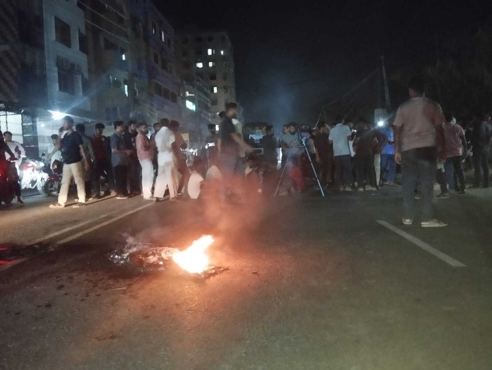জুলাই নিয়ে সামাজিক যোগাযোগ মাধ্যম ফেসবুকে এক পুলিশ সদস্যর আপত্তিকর পোষ্ট করার প্রতিবাদে মহাসড়ক অবরোধ করে বিক্ষোভ করছেন বৈষম্যবিরোধী ছাত্র আন্দোলনের নেতাকর্মীরা।