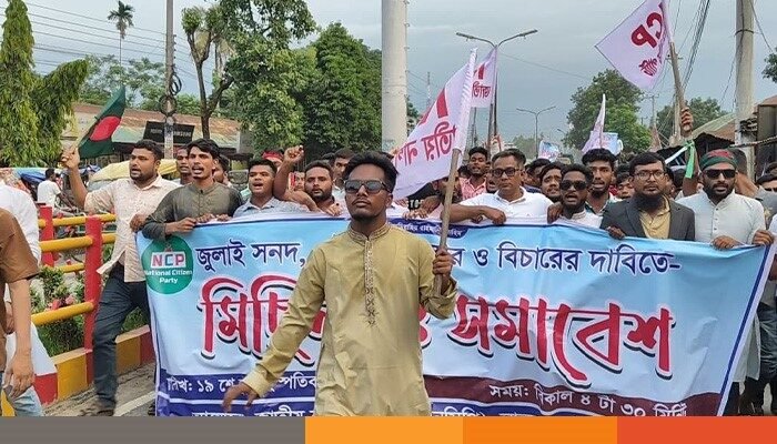 জুলাই সনদ প্রদান, মৌলিক রাজনৈতিক সংস্কার এবং গণহত্যার বিচারের দাবিতে লালমনিরহাটে মিছিল ও সমাবেশ করেছে জাতীয় নাগরিক পার্টি (এনসিপি)।