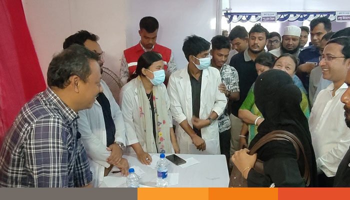 অতিথিরা অনুষ্ঠানের উদ্বোধন শেষে মেডিকেল ক্যাম্পের স্টলগুলো পরিদর্শন করেন।