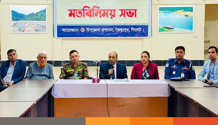 মতবিনিময় সভায় বক্তব্য রাখেন ও উপস্থিত ছিলেন উপজেলা কৃষি অফিসার হুমায়ুন আহমদ, প্রকৌশলী এ কে এম রিয়াজ মাহমুদ, প্রাণি সম্পদ কর্মকর্তা ডাঃ হাসিনুর রহমান চৌধুরী, আবাসিক মেডিকেল অফিসার ডাঃ প্রভাকর রায়, সিনিয়র মৎস্য কর্মকর্তা অলিউর রহমান, সমাজসেবা কর্মকর্তা মোহাম্মদ জিলানী, উপজেলা একাডেমিক সুপারভাইজার (মাধ্যমিক) আজিজুল হক খোকন, যুব উন্নয়ন কর্মকর্তা সাইফুল ইসলাম, প্রাথমিক শিক্ষা কর্মকর্তা আবেদ হাসান, উপজেলা খাদ্য নিয়ন্ত্রক অসীম কুমার তালুকদার, খাদ্য পরিদর্শক আব্দুস ছাত্তার, মহিলা বিষয়ক কর্মকর্তা তাসলিমা, জনস্বাস্থ্য প্রকৌশলী রুহুল আমিন, উপজেলা নির্বাচন কর্মকর্তা এমদাদুল হক,আনসার ও ভিডিপি কর্মকর্তা নাজমা বেগম, বীরমুক্তিযোদ্ধা আব্দুর রশিদ, ইমরান আহমদ সরকারি মহিলা কলেজের সহকারী অধ্যাপক খাইরুল ইসলাম, সারীঘাট উচ্চ বিদ্যালয়ের প্রধান শিক্ষক বদিউল আলম, মাস্টার জালাল উদ্দিন, মাষ্টার মোস্তাক আহমেদ, আবু সুফিয়ান বিলাল, ফায়ার সার্ভিসের স্টেশন (ইনচার্জ) প্রদীপ দাস, সমাজসেবী আব্দুস শুকুর, মাওলানা আব্দুল খালিক, জৈন্তাপুর প্রেসক্লাব সভাপতি নূরুল ইসলাম, সাবেক সভাপতি ফয়েজ আহমদ, সাধারণ সম্পাদক শাহজাহান কবির খান, অনলাইন প্রেসক্লাব সভাপতি মইনুল মুরসালিন রুহেল, সাংবাদিক গোলাম সরওয়ার বেলাল, ইমাম উদ্দিন, সাজ উদ্দিন সাজু, মুরাদ হাসান, উপজেলা এনসিপি’র প্রধান সমন্বয়কারী নজরুল ইসলাম, যুগ্ম সমন্বয়কারী প্রনব দাস, জেলা সদস্য সাইফুর রহমান, ছাত্রনেতা ইলিয়াছুর রহমান সহ জৈন্তাপুর, শ্রীপুর সীমান্ত ফাড়িঁর ক্যাম্প কমান্ডার এবং উপজেলার বিভিন্ন রাজনৈতিক, সামাজিক সংগঠন ও প্রিন্ট ও ইলেকট্রনিক মিডিয়ার সাংবাদিকগণ মতবিনিময় সভায় অংশ গ্রহন করেন।