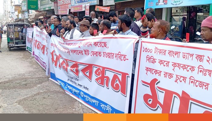 সারের ডিলারশীপ বাতিল এবং সার সিন্ডিকেটের দৃষ্টান্তমূলক বিচারের দাবিতে ঝিনাইদহের শৈলকুপায় মানববন্ধন ও সমাবেশ অনুষ্ঠিত হয়েছে।