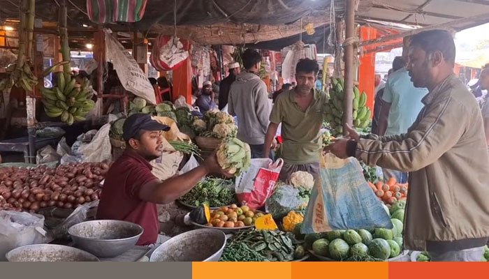 আনারুল ইসলাম নামে এক বিক্রেতা বলেন, রসুন, আদা, পেঁয়াজ, কাঁচা মরিচ, আলুর দাম নাগালেই রয়েছে। কাঁচামালের দাম সব সময় উঠানামা করে। বাজারে শাক-সবজির যোগানের ওপর দাম কম বেশি হয়।