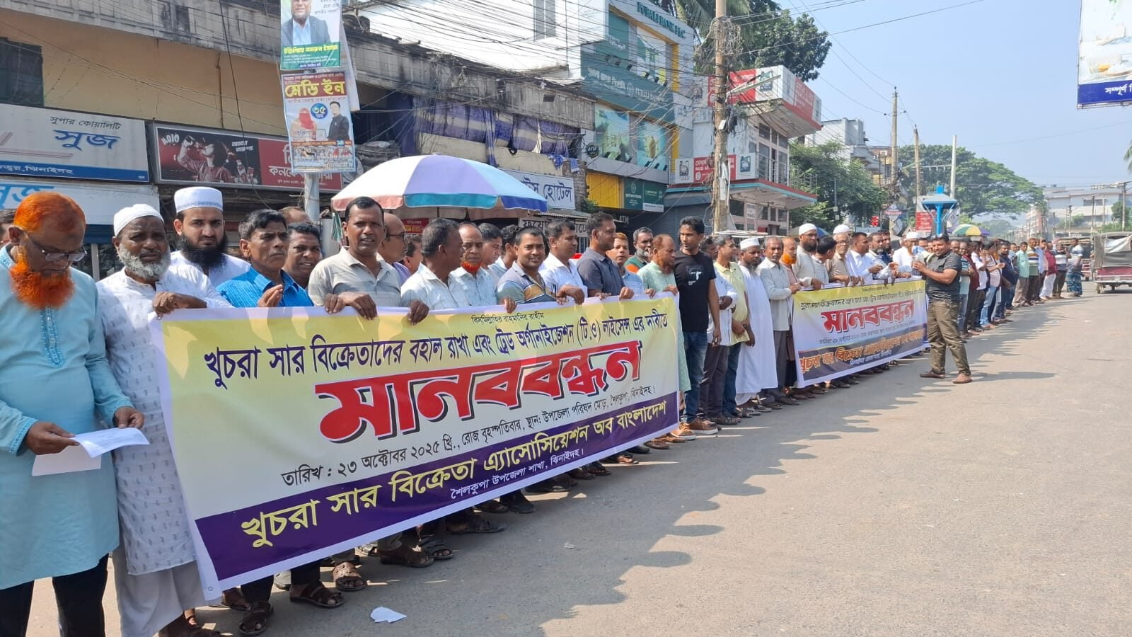ঝিনাইদহে লাইসেন্সের দাবিতে খুচরা বিক্রেতা সাব ডিলারদের মানববন্ধন