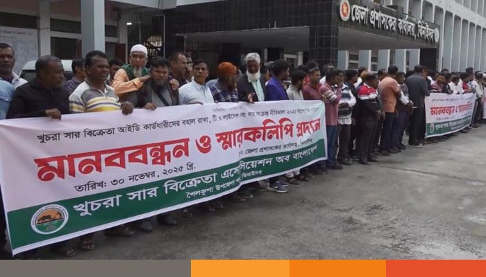 রোববার (৩০ নভেম্বর) সকাল ১০টায় ঝিনাইদহ জেলা প্রশাসকের কার্যালয়ের সামনে খুচরা সার বিক্রেতা এসোসিয়েশন অব বাংলাদেশ এ কর্মসূচির আয়োজন করে।