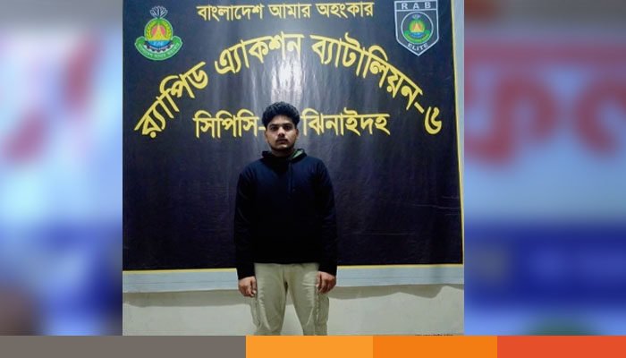 ঝিনাইদহ শহরের পবহাটি সিটি মোড়ে ব্যবসায়ী মুরাদ হোসেন (৪০) হত্যা মামলার আসামী রাহাত আলী (২৫)কে গ্রেফতার করেছে র্যাব-৬।