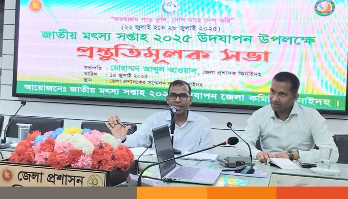 ‘অভয়াশ্রম গড়ে তুলি দেশি মাছে দেশ ভরি’ প্রতিপাদ্য নিয়ে ঝিনাইদহে জাতীয় মৎস সপ্তাহ পালনের লক্ষ্যে প্রস্তুতি সভা অনুষ্ঠিত হয়েছে। জাতীয় মৎস সপ্তাহ বাস্তবায়ন ২০২৫ জেলা কমিটি এই সভার আয়োজন করে। আগামী ২২ জুলাই থেকে ২৮ জুলাই সপ্তাহব্যাপী জাতীয় মৎস সপ্তাহ পালিত হবে।