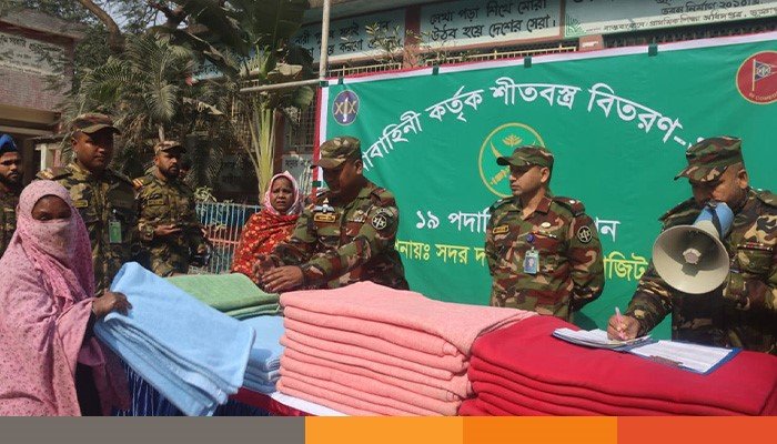 টাঙ্গাইলে সেনাবাহিনীর শীতবস্ত্র বিতরণ
