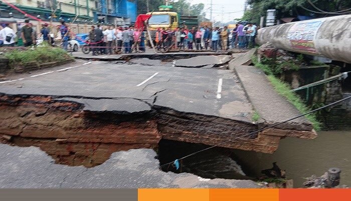 টানা বৃষ্টিতে চট্টগ্রামে দেবে গেছে সড়ক, ভোগান্তিতে মানুষ