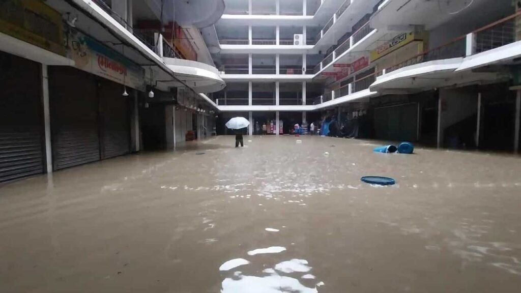 চট্টগ্রামে বুধবার (৬ আগস্ট) রাত থেকে টানা বৃষ্টিতে নগরীর দুই নম্বর গেট-অক্সিজেন সড়কের স্টারশিপ কারখানা এলাকায় সড়ক দেবে গেছে। এতে সড়কটিতে যানচলাচল বন্ধ রয়েছে; সৃষ্টি হয়েছে দীর্ঘ যানজটের। বৃষ্টিতে বিভিন্ন এলাকায় জলাবদ্ধতার সৃষ্টি হয়েছে। অব্যাহত বৃষ্টিপাতের কারণে সড়কে গাড়ির সংখ্যাও কম। এতে সপ্তাহের শেষ কর্মদিবসে ভোগান্তিতে পড়তে হচ্ছে নগরবাসীকে।
