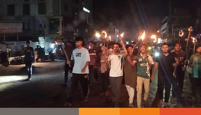 চাঁদাবাজদের ঠিকানা এই বাংলায় হবে না, একশন টু একশন, ডাইরেক্ট একশন—এমন স্লোগানে ঢাকার ব্যবসায়ী মোহাম্মদ সোহাগ হত্যাকাণ্ডের প্রতিবাদে জয়পুরহাটে মশাল মিছিল অনুষ্ঠিত হয়েছে। শুক্রবার রাত সাড়ে ১১টায় শহরের ডা. আবুল কাশেম ময়দান থেকে মিছিল শুরু হয়ে বাটারমোড় হয়ে শহীদ বিশাল চত্বরে গিয়ে শেষ হয়।