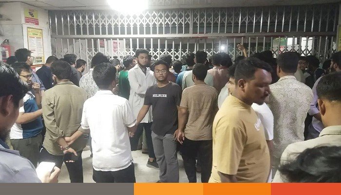 এ সময় বিশ্ববিদ্যালয়ের শিক্ষার্থীদের একটি অংশ জরুরি বিভাগের গেট ভেঙে ভেতরে প্রবেশের চেষ্টা করছেন বলেও অভিযোগ করেন তিনি। তিনি বলেন, চিকিৎসকদের নিরাপত্তা নিশ্চিত করতে জরুরি বিভাগের প্রধান গেট বন্ধ করে দেওয়া হয়েছে।