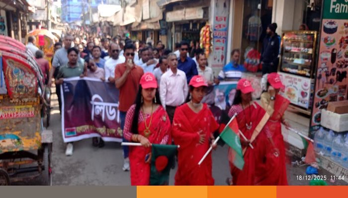 বৃহস্পতিবার (১৮ ডিসেম্বর) সকালে শহরের গোপালকৃষ্ণ টাউন ক্লাব সড়কের সামনে থেকে মিছিলটি শুরু হয়ে শহরের বিভিন্ন সড়ক প্রদক্ষিণ করে বিলাশ চত্বরে গিয়ে শেষ হয়। মিছিল শেষে সেখানে অনুষ্ঠিত পথসভায় জেলা যুবদলের ভারপ্রাপ্ত সভাপতি কামরুজ্জামান তুষার এবং জেলা যুবদলের সদস্য সচিব এমদাদুল হক মাসুদ বক্তব্য রাখেন।