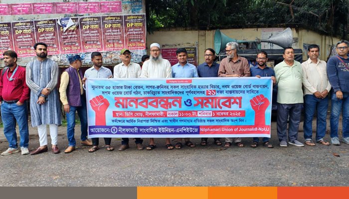 ​নীলফামারী প্রেসক্লাবের ভারপ্রাপ্ত সভাপতি আতিয়ার রহমান বাড্ডা তার বক্তব্যে বলেন, দীর্ঘদিন ধরে নবম ওয়েজ বোর্ড বাস্তবায়ন না হওয়ায় এবং দ্রব্যমূল্যের লাগামহীন ঊর্ধ্বগতির কারণে সাংবাদিকরা পরিবার নিয়ে চরম আর্থিক সংকটের মধ্যে দিন কাটাচ্ছেন। সাংবাদিকতার মতো ঝুঁকিপূর্ণ পেশায় জীবন বাজি রেখে কাজ করার পরও যদি জীবিকার নিশ্চয়তা না থাকে, তবে তা স্বাধীন সাংবাদিকতার জন্য বড় হুমকি।