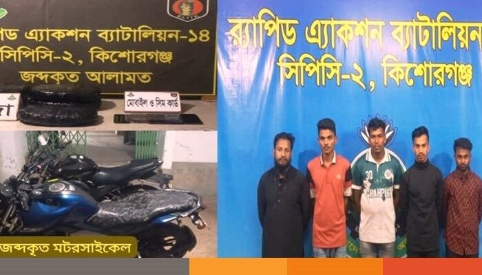এরআগে একই দিন রাত আনুমানিক পৌনে ১টার দিকে পাঁচ মাদক ব্যবসায়ীকে কিশোরগঞ্জের সদর থানাধীন রশিদাবাদ এলাকায় অভিযান চালিয়ে ১০ কেজি গাঁজাসহ গ্রেফতার করতে সক্ষম হয় কিশোরগঞ্জ র‌্যাব।