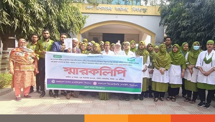সোমবার (২৪ নভেম্বর ২০২৫)বেলা সাড়ে ১২ টায় দিনাজপুর প্রশাসকের মাধ্যমে এই স্মারকলিপি প্রদান করে নার্সিং এসোসিয়েশন দিনাজপুর জেলার শাখার নেতৃবৃন্দ। কেন্দ্রীয় কর্মসূচির অংশ হিসেবে এই দিনাজপুরে এই স্মারকলিপি প্রদান করা হয়। জেলা প্রশাসকের পক্ষে স্মারকলিপি গ্রহণ করেন অতিরিক্ত জেলা প্রশাসক (সার্বিক) মোঃ রিয়াজ উদ্দিন।