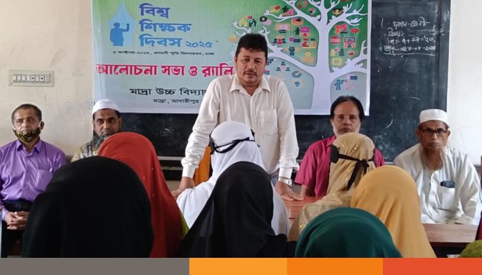 ‘শিক্ষকের কন্ঠস্বর, শিক্ষায় একটি নতুন সামাজিক অঙ্গীকার, বিশ্ব শিক্ষক দিবসের প্রতিপাদ্য, নিয়ে মাদারীপুরে যথাযোগ্য মর্যাদায় বিশ্ব শিক্ষক দিবসে আলোচনা সভা অনুষ্ঠিত হয়েছে।