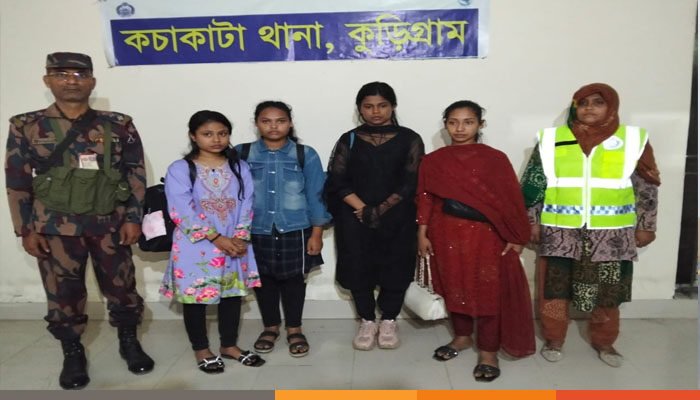 কুড়িগ্রাম ২২ ব্যাটালিয়ন এর কেদার কোম্পানির হাবিলদার শাহজাহান আলী জানান, পতাকা বৈঠকের মাধ্যমে চার যুবতীকে বিজিবির জিম্মায় নেয়া হয়। পরে সন্ধ্যায় তাদেরকে কচাকাটা থানায় হস্তান্তর করা হয়েছে।