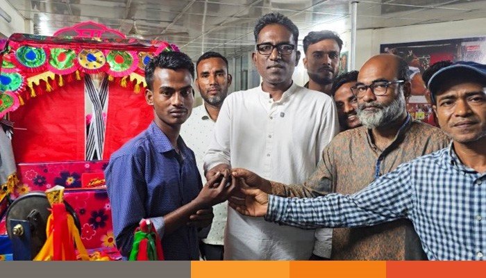 সোমবার (১৬ মার্চ) রাত পৌনে ৮টার দিকে নেত্রকোনা পৌরশহরের চকপাড়াস্থ নিজ কার্যালয়ে আনুষ্ঠানিকভাবে রিকশার চাবি ওই যুবকের হাতে তুলে দেন এই বিএনপি নেতা। এ সময় রিকশার ব্যাটারিতে প্রথমবার চার্জ দেওয়ার জন্য নগদ ৫০০ টাকাও প্রদান করেন তিনি।