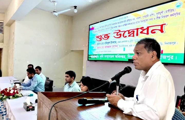 দিনাজপুর সদর উপজেলা কৃষি সম্প্রসারণ অধিদপ্তরের আয়োজনে উপজেলা পরিষদ হলরুমে ২০২৫-২০২৬ অর্থ বছরে কৃষি প্রনোদনা কর্মসূচীর আওতায় রবি মৌসুমে গম, সরিষা, সুর্যমুখী (ওপি), সুর্যমুখী (হাইব্রিড) ও শীতকালীন পিয়াজ আবাদ ও উৎপাদন বৃদ্ধির লক্ষ্যে ক্ষুদ্র ও প্রান্তিক কৃষকদের মাঝে বিনামূল্যে সার ও বীজ বিতরণ কর্মসূচীর উদ্বোধন করা হয়েছে।