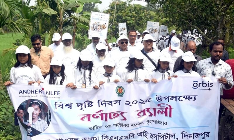 দিনাজপুর গাওসুল আযম বিএনএসবি আই হসপিটাল এর উদ্যোগে বিশ্ব দৃষ্টি দিবস-২০২৫ উপলক্ষ্যে বর্ণাঢ্য র্যালী ও স্কুল সাইট টেস্টিং প্রোগ্রাম অনুষ্ঠিত হয়েছে।