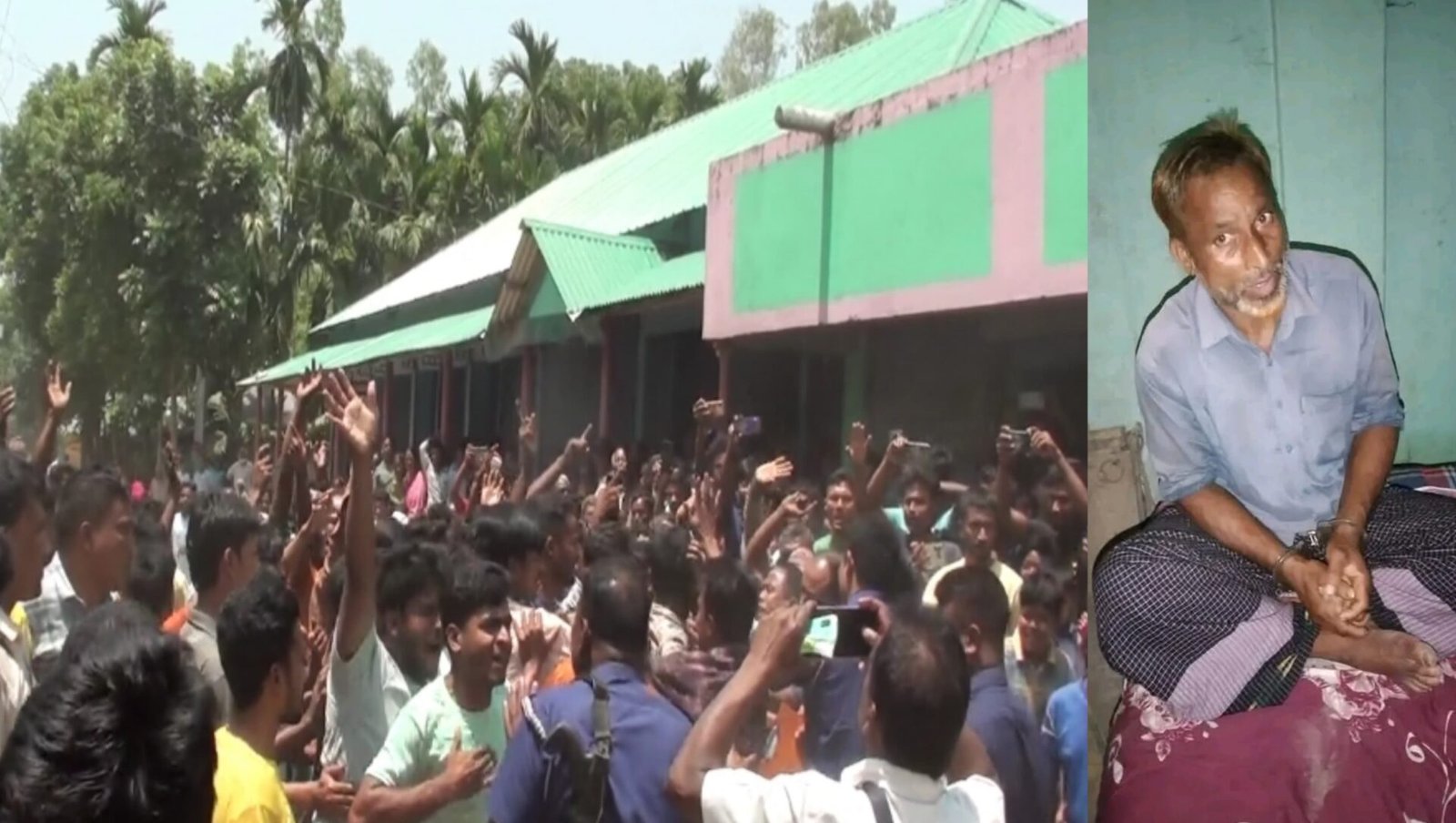 দিনাজপুরের বীরগঞ্জে শিশু ধর্ষণকারী সন্দেহে ১ জন বৃদ্ধকে জনতা আটক করে জুতার মালা গলায় দিয়ে পুলিশে দিলেন।