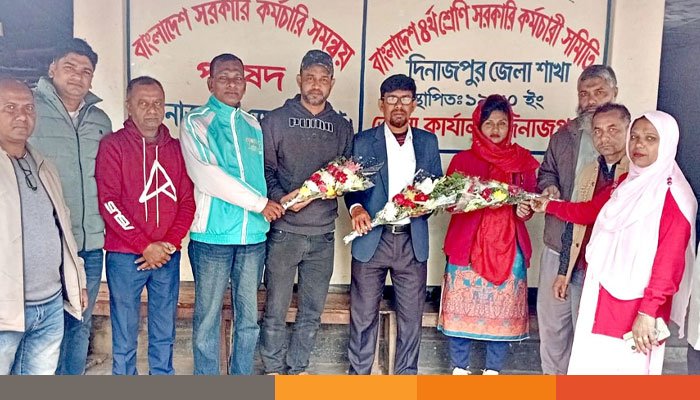 জেলা প্রশাসক কার্যালয় চত্বরে সমিতির কার্যালয়ে সকাল পোনে ৯ টায় সমিতির সভাপতি মোঃ ফরিদ হোসেন এর সভাপতি আলোচনা সভা শেষে সমিতির সদস্যরা কার্য নির্বাহী পরিষদের সিনিয়র সহ-সভাপতি মোহাম্মদ শাহীন (জেলা জজ কোর্টের কর্মচারী), সমিতির সহ-সভাপতি মোঃ কামাল হোসেন (দিনাজপুর টেক্সটাইল ইনস্টিটিউট এর কর্মচারী) ও সমিতির মহিলা বিষয়ক সম্পাদিকা মোছাঃ জেসমিন আক্তার জেসি (জেলা মৎস্য অফিসের কর্মচারী) কে ফুল দিয়ে সংবর্ধনা প্রদান করা হয়।