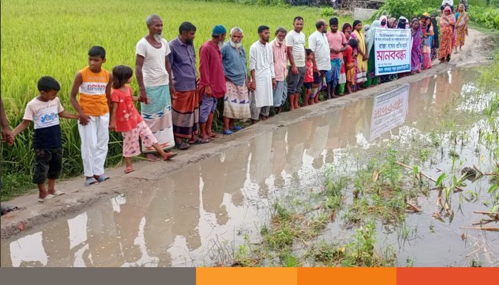 দিনাজপুরে বীরগঞ্জে ১০টি পরিবারের চলাচলের রাস্তা বন্ধের প্রতিবাদে মানববন্ধন