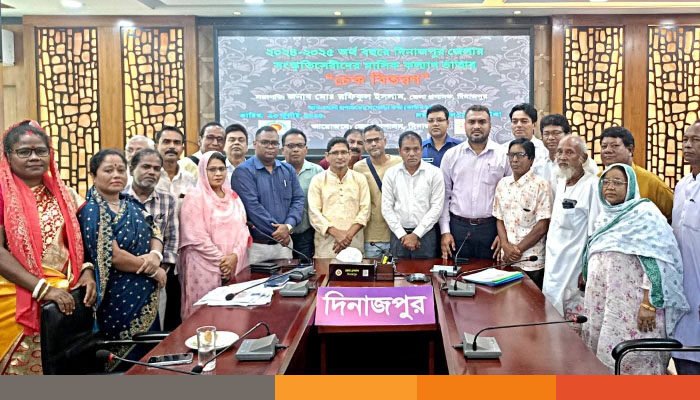 দিনাজপুর জেলা প্রশাসনের আয়োজনে ২৩ শে জুলাই- ২০২৫ বুধবার জেলা প্রশাসকের সম্মেলন কক্ষে ২০২৪ -২০২৫ অর্থ বছরে দিনাজপুর জেলার সংস্কৃতিসেবীদের মাসিক কল্যাণ ভাতার চেক বিতরণ করা হয়েছে।