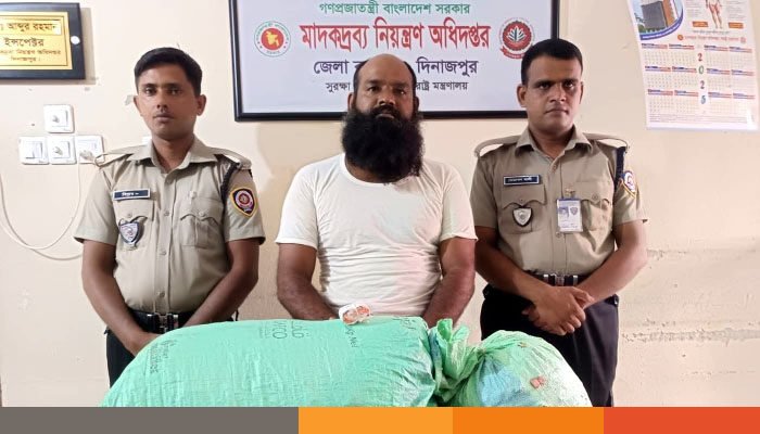 মাদকদ্রব্য নিয়ন্ত্রণ অধিদপ্তর দিনাজপুর জেলা কার্যালয়ের চলমান মাদকবিরোধী নিয়মিত অভিযানে ডিএনসি দিনাজপুরের পরিদর্শক মোঃ আব্দুর রহমান-এর নেতৃত্বে এবং গোপন সংবাদের ভিত্তিতে, ১০ আগষ্ট ২০২৫ রোববার দিনাজপুর শহরের পৌরসভার ১১ নং ওয়ার্ডের পূর্ব দপ্তরীপাড়ার মৃত আব্দুস সালাম মুন্সী এর পুত্র মোঃ রানা (৩৬)-এর বাড়ির সামনে তার বড় ভাই মোঃ আমিনুল ইসলাম (৪০)-কে তল্লাশী করলে, তার হাতে থাকা একটা প্লাস্টিকের বস্তায় ১৫ কেজি গাঁজা যার আনুমানিক মূল্য ৪ লক্ষ ৫০ হাজার টাকা এবং ৩৬০ পিস ইয়াবা যার আনুমানিক মূল্য ১ লক্ষ ৮ হাজার দেখানো হয়েছে।